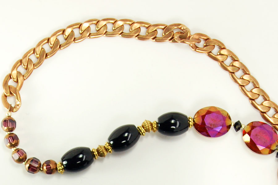 a soft black fabric with accent colors to coordinate with the iridescent beads.